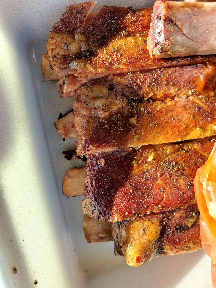 This place is wonderful and a very pleasant hidden drive thru bbq find. I enjoyed it in my car. The burger is massive beware the double size. The ribs were super hot but not in any way over cooked. Smoky and delicious. I need to try more! Staff/owners know how good their food is and you can tell they put care and effort into their dishes and packaging which I value in BBQ greatly. Thank you!