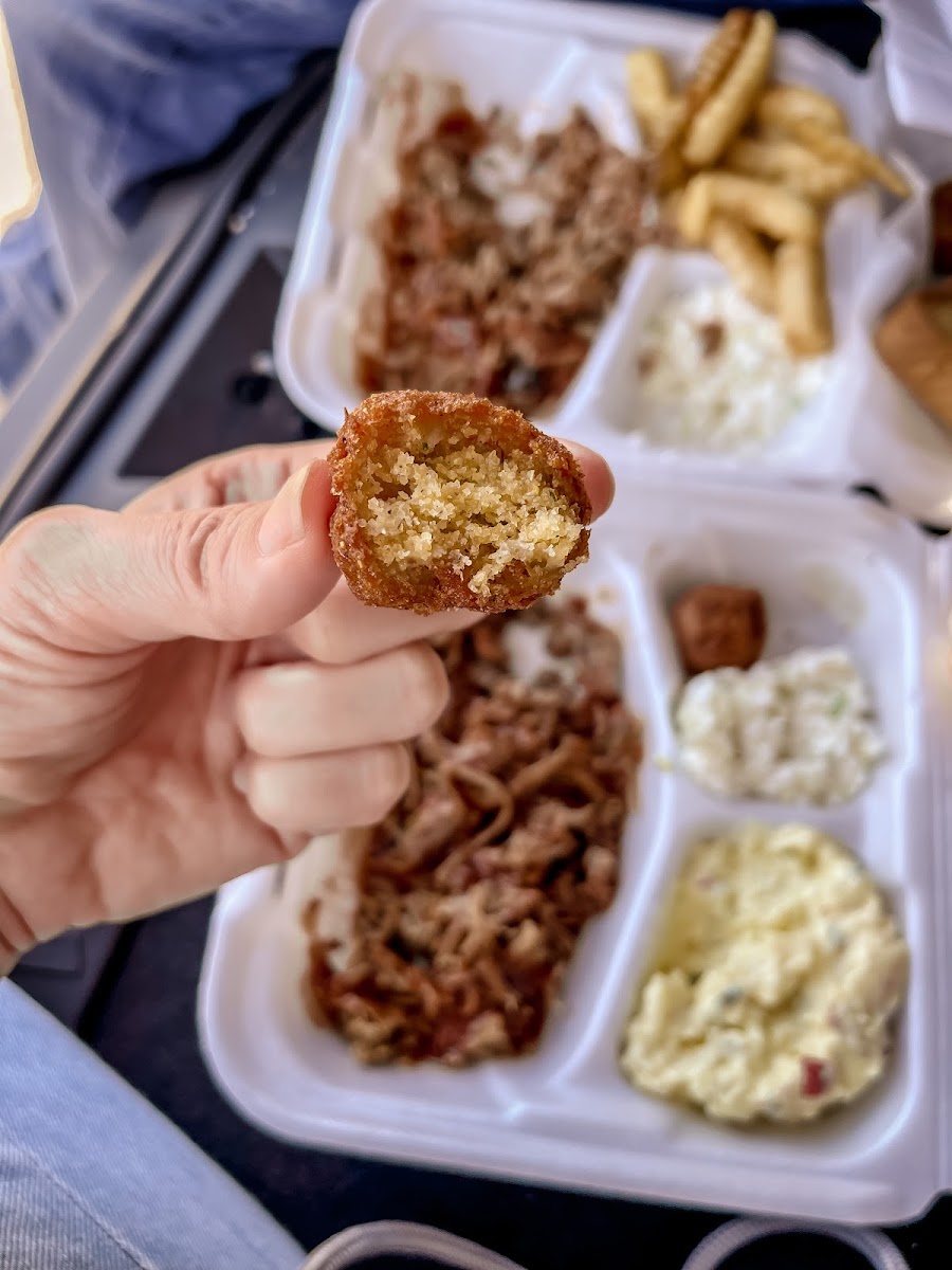 This was my first visit to BBQ Shack and I was very happy with the pulled pork plate I ordered. Not a lot of parking here, but I used the drive-thru, and the wait wasn't too long. The pork was finely shredded and the sauce ratio was just right! I ordered the orka and fries with it and both items were really good. This satisfied the pulled pork craving I've been having and I'll definitely be back!