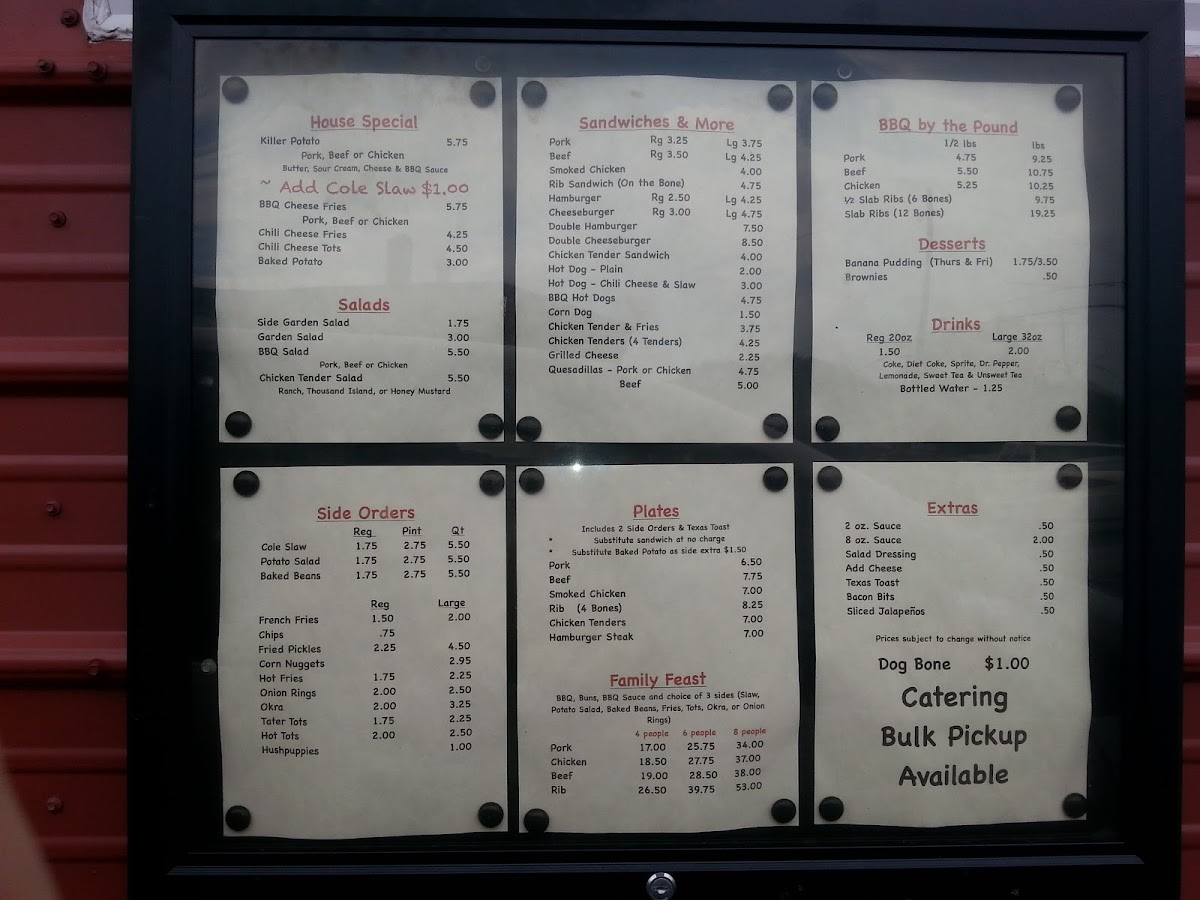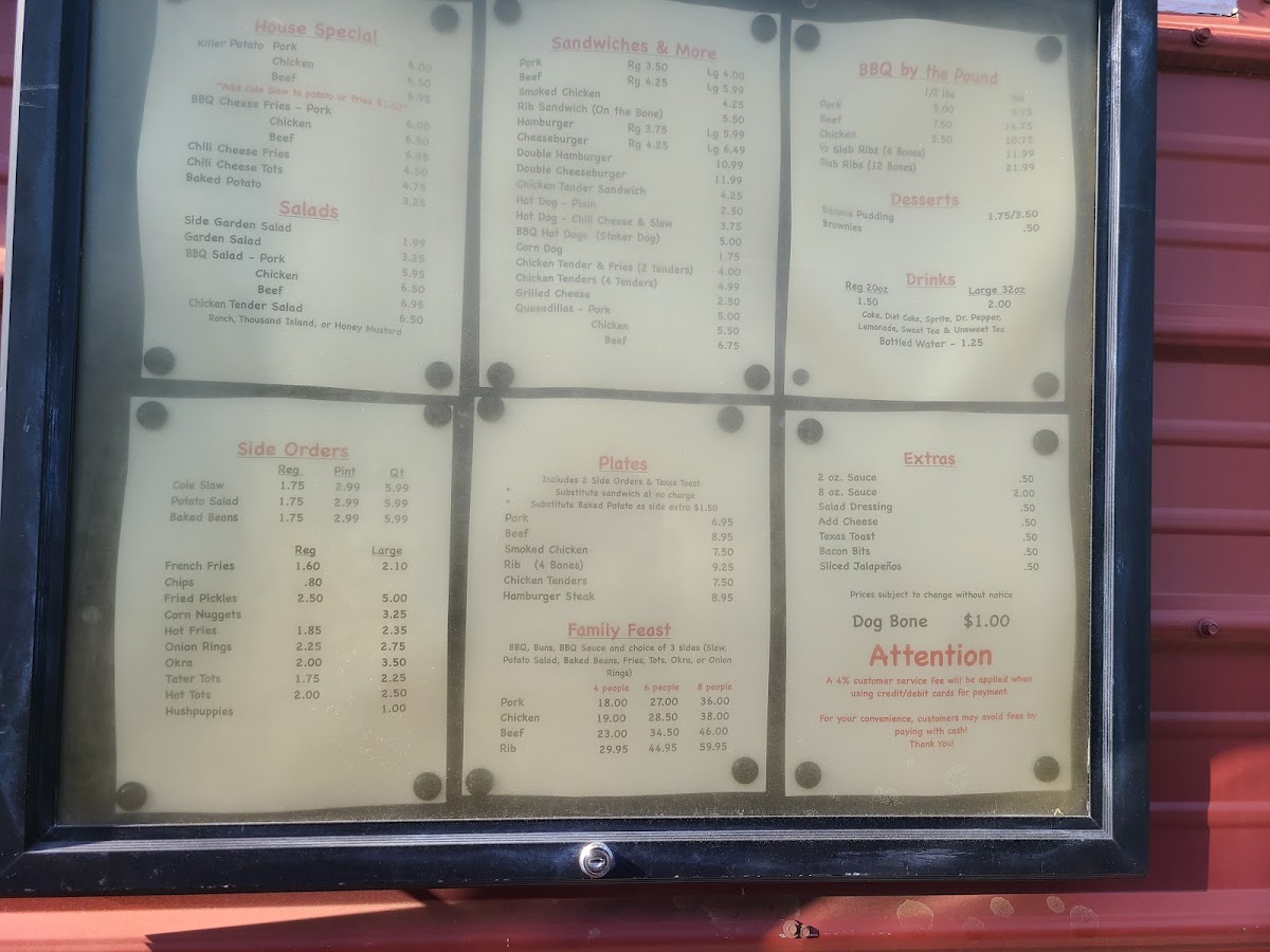 The BBQ Shack menu offers a straightforward, comforting selection that pairs well with its relaxed, friendly atmosphere. You’ll find hearty barbecue classics and simple sides designed for easy, satisfying meals. Whether you’re stopping by for a casual lunch, a laid-back dinner, or a snack after exploring nearby Chickamauga battlefield, the menu feels approachable and unpretentious.